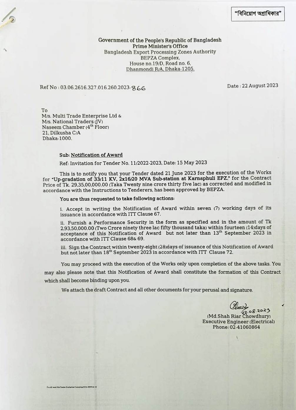 Up-gradation of 33/11 KV, 2x16/20 MVA Sub-station at Karnaphuli EPZ |