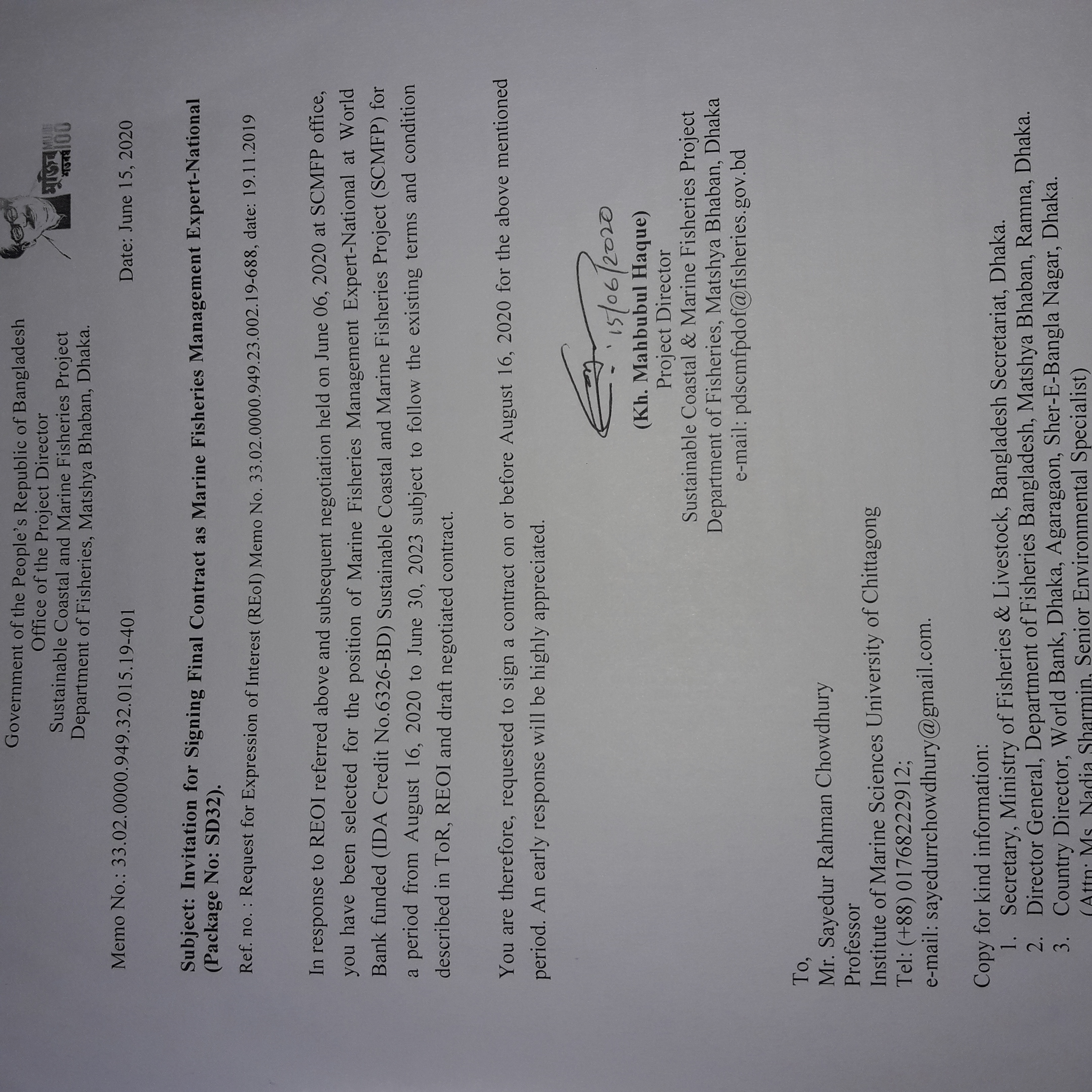 Professor, Institute of Marine Sciences University of Chittagong Chattagram-4331 Tel: (+88) 01768 222 912, e-mail: sayedurrchowdhury@gmail.com |