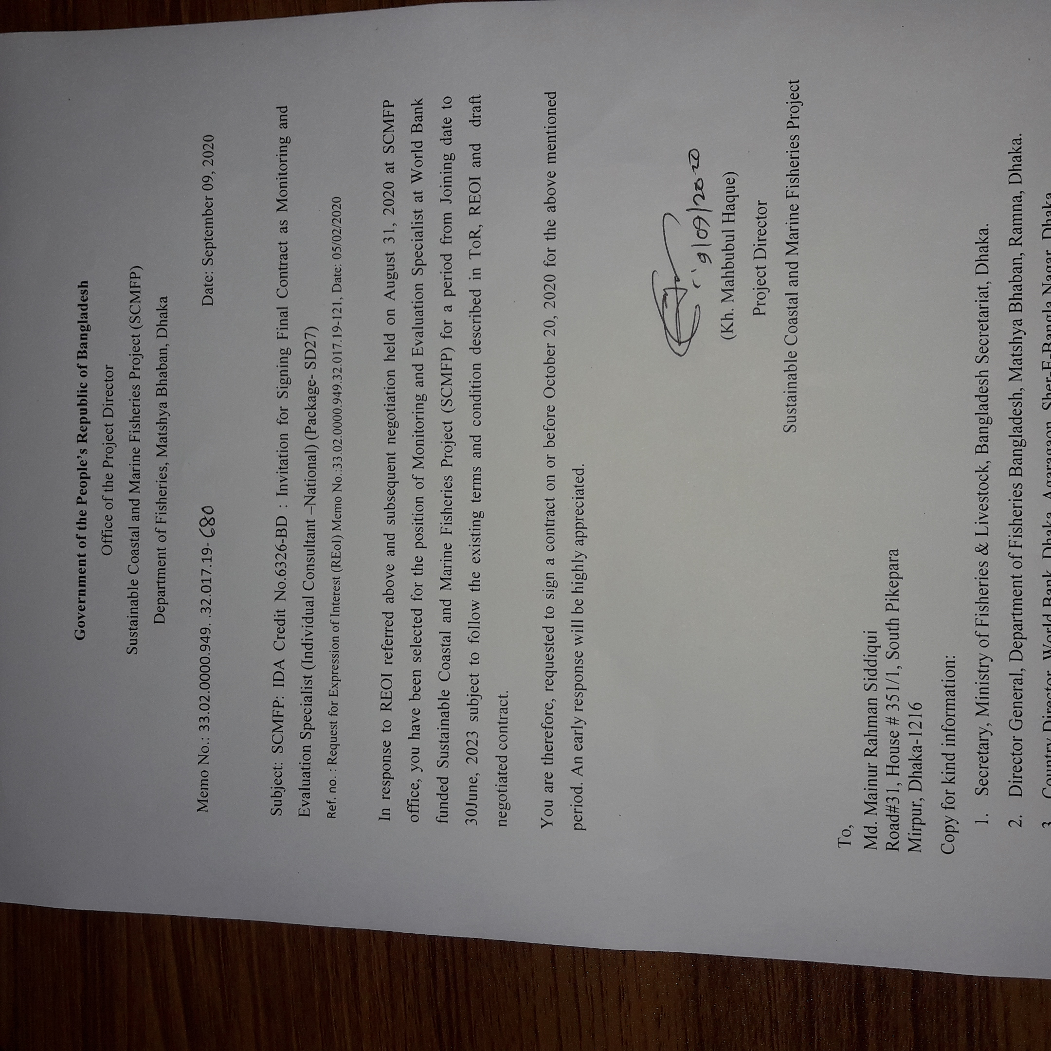 Marine Fisheries Management Expert(Individual Consultant – National) |